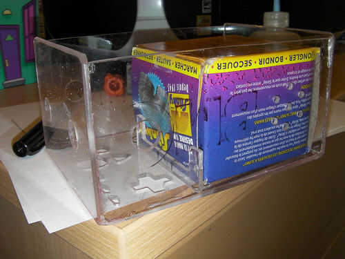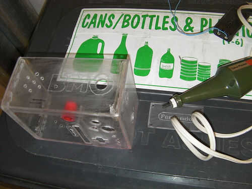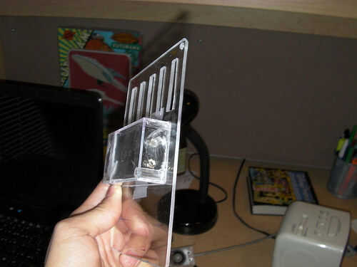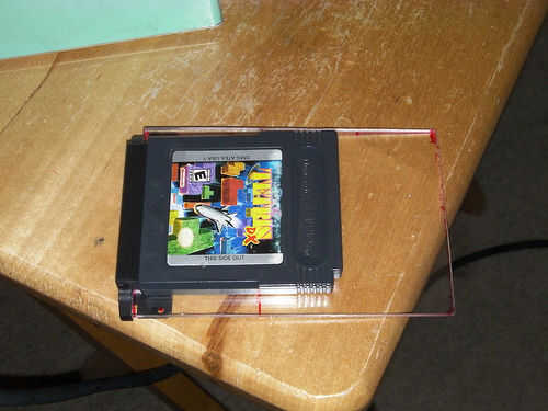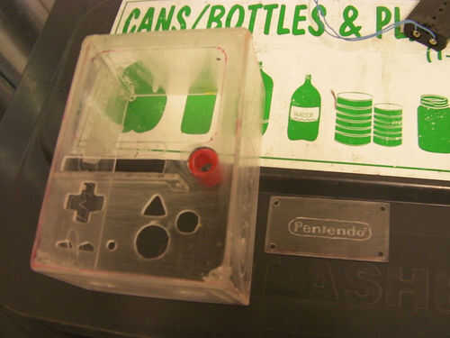 - Usando un cartucho de Game Boy Color y el unsoldered lector de cartucho de Game Boy Color (ver paso 12), cortar un U-en forma de estante plástico, para que el lector puede caber bien en él. Esto se pega dentro de Beemo, para que Game Boy juegos puede resbalar en el lector de cartucho.