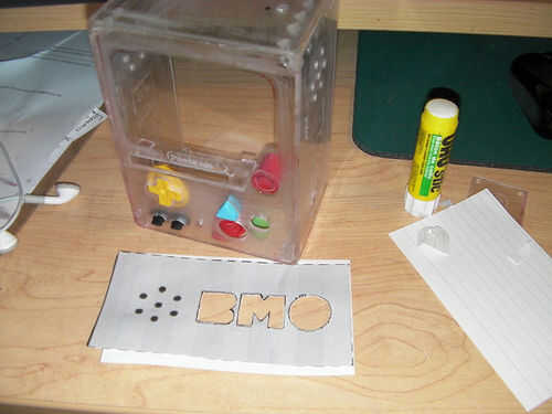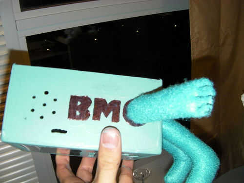Por último, pintar en las iniciales de Beemo usando la pluma de pintura sharpie negro.