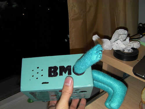 Primero quitar los brazos y las piernas (por supuesto) por lo que no van a conseguir pintado en. Entonces cuerpo de pintura ligeramente arena Beemo usando la pintura Picea azul . Recuerda aislar la porción de la pantalla de Beemo y proteger desde que accidentalmente pintada en. Sugiero que cubren los lados con cinta aislante, para que ninguna pintura puede escurrirse por debajo.