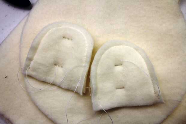 Vamos a empezar fácil coser las orejas. PIN cada par de tela oído juntos y coser alrededor del borde superior. Asegúrese de dejar abierta la parte inferior.