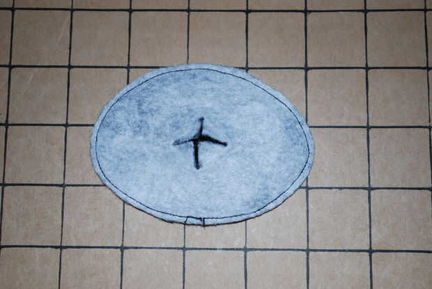 Para la nariz, cortar un óvalos negros 2 negros (utilicé vinilo negro). Coloque derecho lados juntos y coser. Corte una abertura en la parte trasera, vuelta adentro hacia fuera y y con una pequeña cantidad de polyfil. Coser o pegar las mejillas sobre el agujero de la cara.