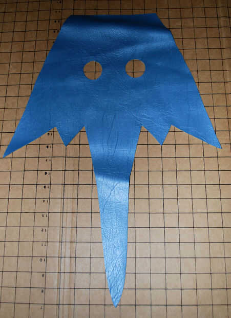 Corte la pieza de la cara como se muestra. Antes de cortar los agujeros del ojo, mantener hasta la cara del usuario y marque donde cortar.