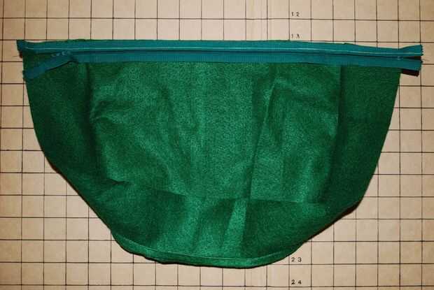 PIN y coser la pieza mochila verde oscuro a un cierre de 16 pulgadas. A continuación, pin y coser la pieza de tela verde luz al otro lado de la cremallera.