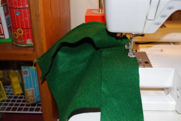 Coser la tira de borde verde luz a uno de los rectángulos redondeados verdes claros 3/8 de pulgada del borde. Recorte cualquier exceso.