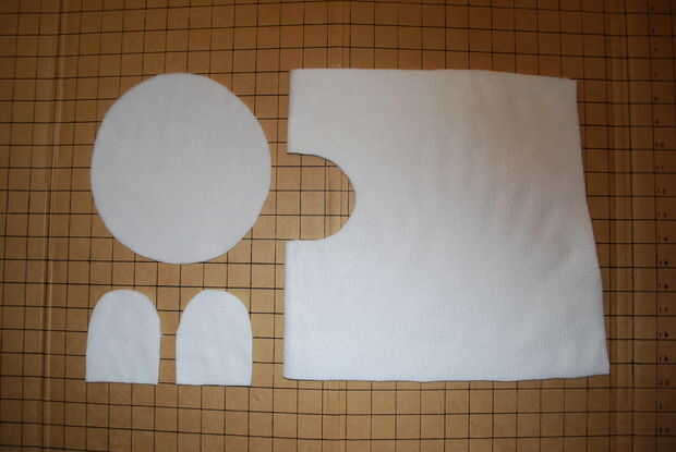Para las orejas, cortar 4 piezas de paño grueso y suave 3 pulgadas de ancho y 3,5 pulgadas de alto.
