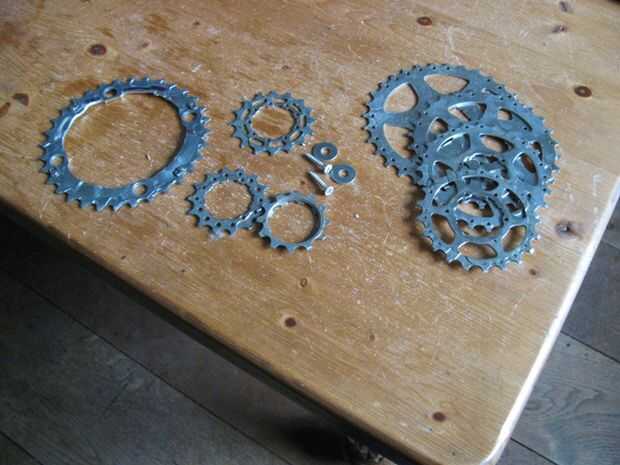Aquí es otra gran manera de reutilizar esa basura que se encuentra alrededor de la casa. Una vieja llanta de bicicleta es una base ideal para un reloj. La llanta que perteneció en mi bicicleta de carretera de amigos antes de que corrió sobre él con s