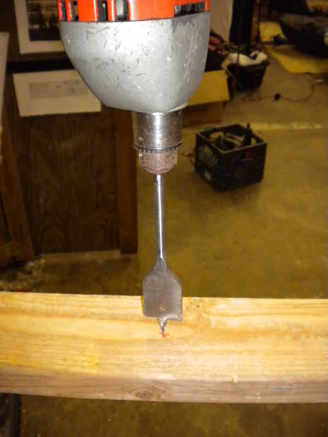 ¡ Nota ! Utilice un trozo de prueba de 2 x 4 para perforar un todo y ver si el conducto se ajusta perfectamente a través de él. Si es demasiado pequeño, puede utilizar un archivo de madera o de vaivén para tallar hacia fuera.