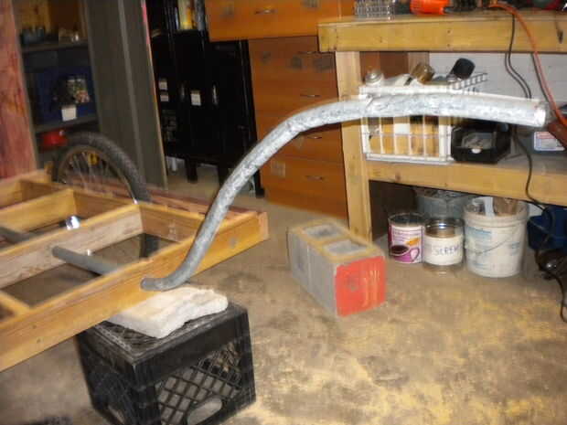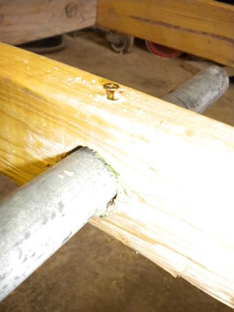 Paso 4: Utilizando un taladro de broca acero un pequeño agujero abajo por la parte superior de cada 2 x 4 y a través del conducto que cruza el conducto con el 2x4s. Se hunden un tornillo en cada orificio para sujetar el conducto al bastidor.