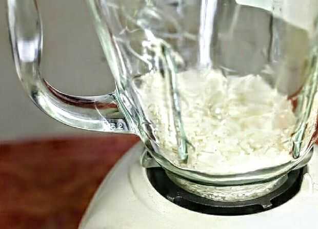 Poner el arroz en una licuadora y mezcla durante 1-2 minutos agregue agua y dejarlo sentarse durante la noche y luego colar el arroz fuera del agua. Usted puede lanzar lejos el arroz, pero necesita mantener el agua.