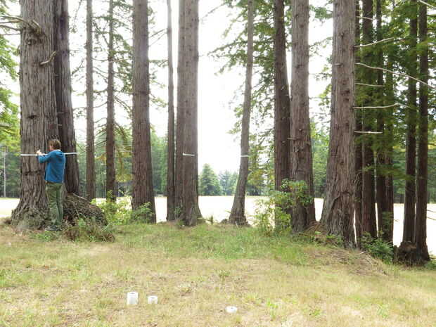 Una persona había servida la cámara mientras la otra coloca la cinta. La persona de la cámara utiliza una regla de metal pequeña para asegurar que las líneas eran incluso en el visor. Bloqueado a un trípode, visor de la cámara ofrece una precisión y precisión más allá de lo que el ojo es capaz de, y el punto de vista solo elimina el paralaje.
