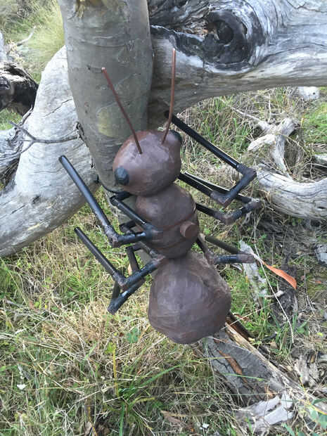 Ahora el geocache estaba listo para ser colocado en la naturaleza. Coloqué una hoja de registro en el envase de la medicina y encontró un lugar apartado en el bosque para ocultar la caché. Usé un par más lazos de cable colocados entre la espina dorsal de las patas y el cuerpo a agregado la caché a un árbol. Estaba muy contento con el resultado final, mucho mejor que una máscara de batman.