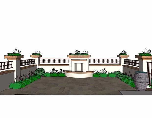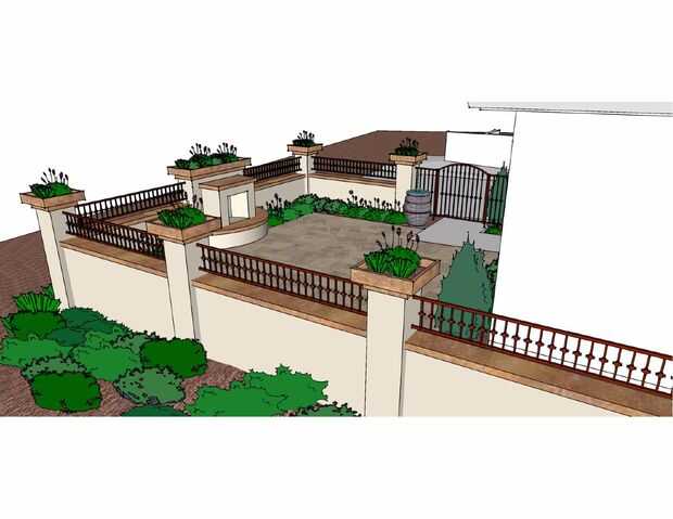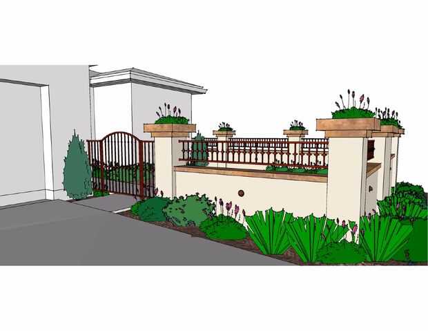 Tapas de pared y columna hormigón fueron una parte importante del diseño de este patio desde el principio, como se muestra en estas imágenes del modelo de SketchUp y detalles CAD. El color rico, ladrillo rojo fue seleccionado para enfrentar a las tejas español. Para mantener un aspecto limpio y fuerte a la pared del patio, quería ocultar todos los servicios públicos - y había muchos! La lista incluye: