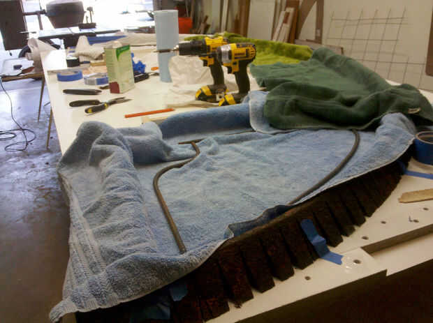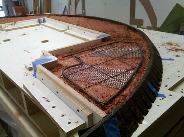 Concreto es fuerte en compresión, pero débil en tensión. Para minimizar el craqueo, estructural refuerzo debe integrarse en todos los proyectos de hormigón fundido. Hay varias formas de proporcionar refuerzo incluyendo fibras de plástico o fibras de vidrio, pero elegí usar #3 (3/8") acero de refuerzo, o"rebar"para el cortocircuito. Mi local concreto y proveedor de mampostería, Bloque de Vol de aire, proporcionan la mayoría de las curvas de barras basadas en mis dibujos de refuerzo y dimensiones. Dobló la varilla para el hogar curvo de yo porque las formas son más complejas y había sólo tres piezas para. Para hacer mis curvas que usar un doblador del rebar de un contratista. Junto con barras de refuerzo también alambre "remesh" usado y había ampliado de metal malla de acero. Barras de refuerzo de alambre había atado todo junto.