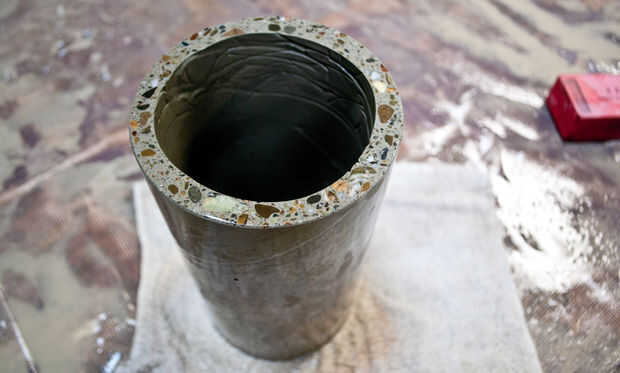 15. la superficie superior sea un poco bruto, y si no tienes una pulidora orbital de 5", podría tratar de lijar con lija de grano 60 sobre una almohadilla de goma o fijado a un bloque de madera. Lo tendrá para siempre, pero puedes encontrarla buscando decente si eres paciente. También puede moler y pulir concreto utilizando el mismo equipo que desea utilizar para moler y para pulir vidrio. En este paso obtendrás los mejores resultados si tienes la herramienta adecuada para el trabajo (pulidor orbital de 5" con los cojines para el hormigón).