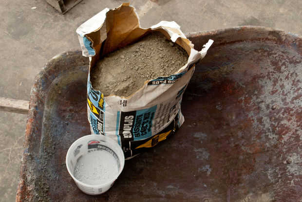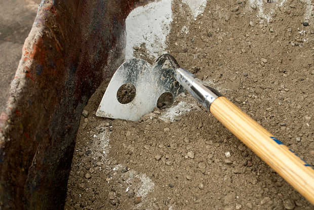 5. mezcla el hormigón con una azada de mortero o con una pala plana.