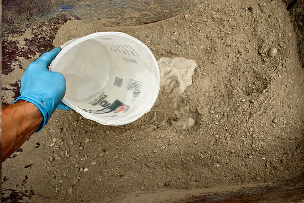 7. cuchara para concreto mojado con un cubo y comenzar a llenar su formulario.