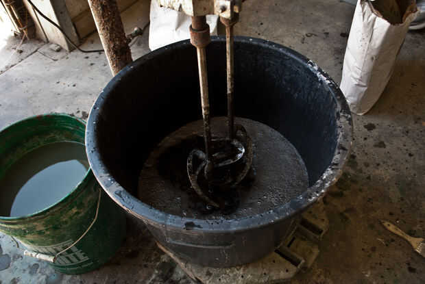 3. mezclar bien con el mezclador de paleta, moviendo los remos alrededor del cubo y raspar las paredes con una llana.