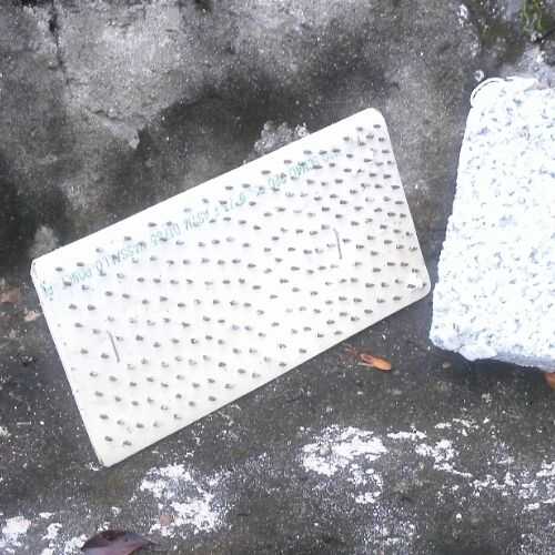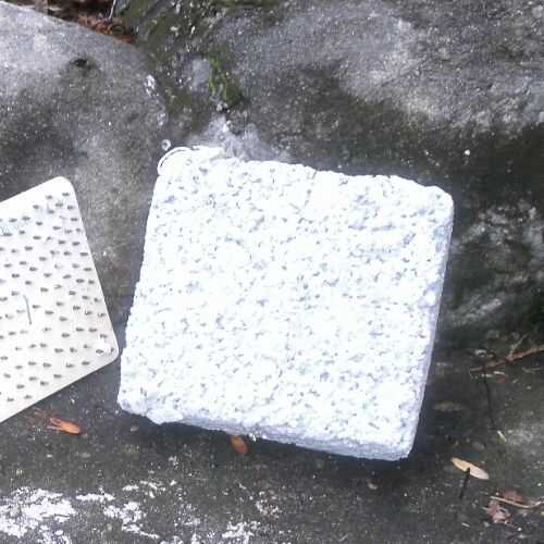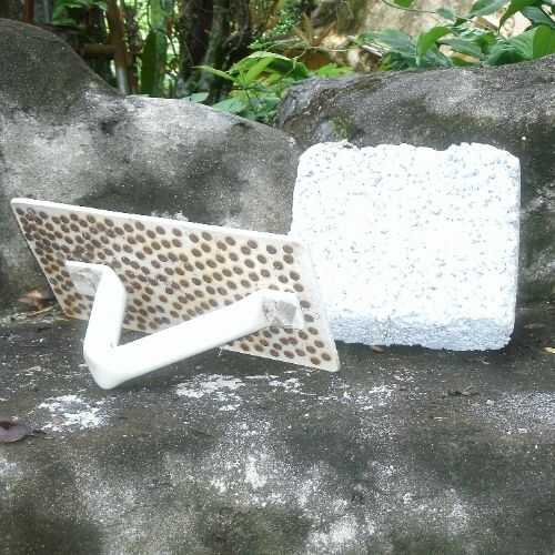 Se trata de un bloque poroso de espuma de poliestireno y el cemento. Mediante la presentación de bloques de espuma de poliestireno con herramienta especial que hice usando un montón de clavos para techos, pude hacer una fuente de partículas de tamaño de guisante.