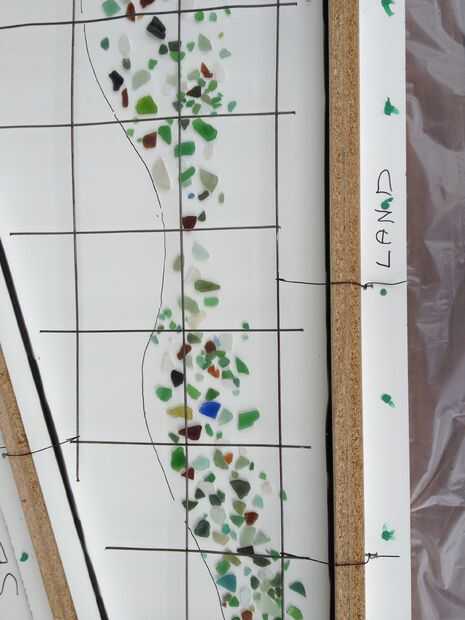 Dibujé una línea ondulada para guiar la "Costa" y cristal playa salpicados a lo largo de la línea.