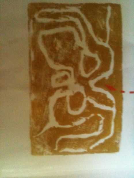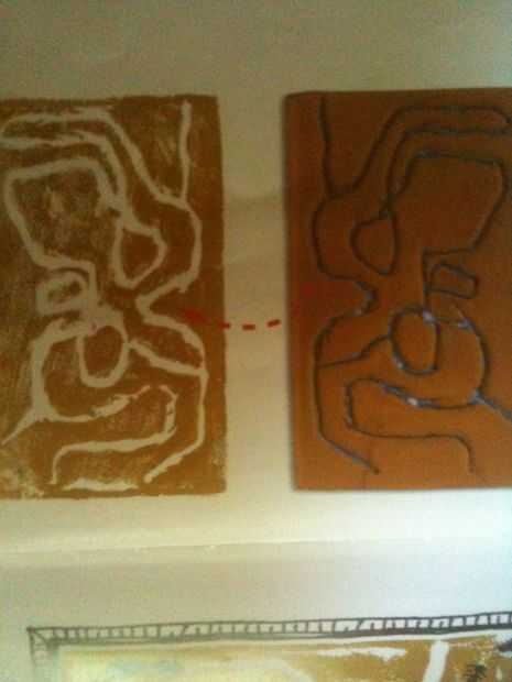 Rápidamente voltear del lado pintado de la bandeja de espuma en una hoja de papel. Presione la bandeja hacia abajo con ambas manos. Cuidadosamente levante la bandeja, tratando de no manchar la impresión de los túneles de hormiga que ha hecho. Déjelo secar.