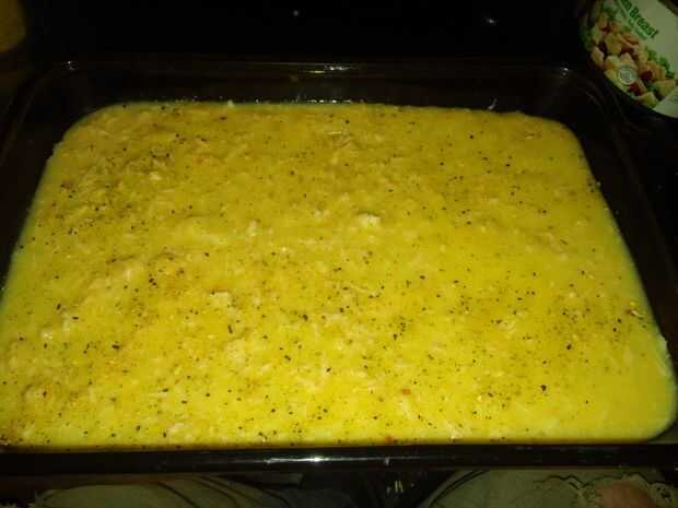Agregar al Combo de pollo (crema de pollo y pollo en conserva en la parte superior los taters puré.