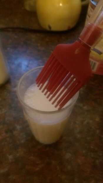 Tome un cepillo, como sería utilizar para poner salsa de carne y sumergir en la leche.