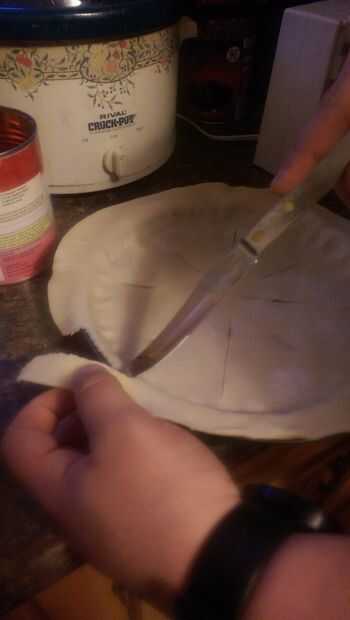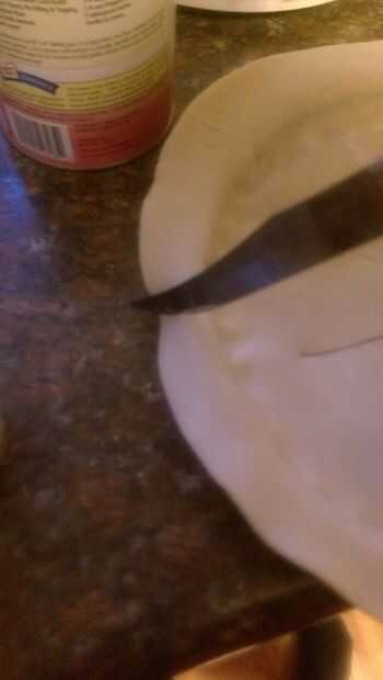 Agarrar el borde de la corteza y trace lentamente el cuchillo alrededor de la cacerola, retirar la corteza.