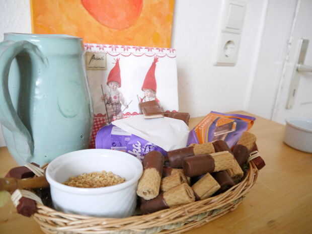 Usted necesitará el caramelo de chocolate o la Pralinoise, el Pralin o lo que usted eligió en su lugar y las gavotas o los copos de maíz.