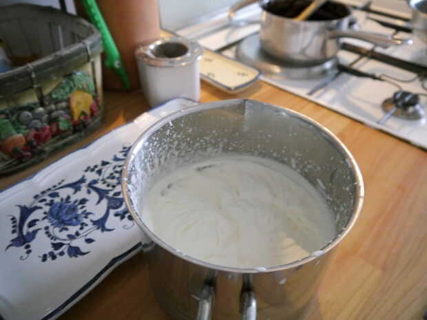 Consejo: Si desea que su pastel a ser menos grasa puede ser una mousse de chocolate blanco y huevo. Batir 6 claras de huevo en lugar de la crema (huevos crudos pueden ser peligrosos si se aren´t fresco y de buena calidad o si tienes un estómago delicado así que cuidado).