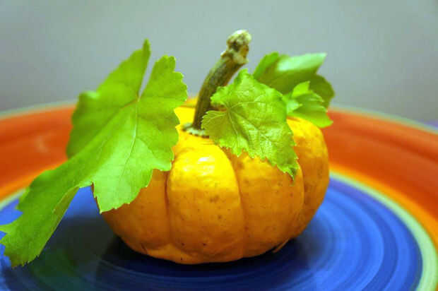 Coloque la pieza de la parte superior o inferior en el orificio de la calabaza como se muestra.
