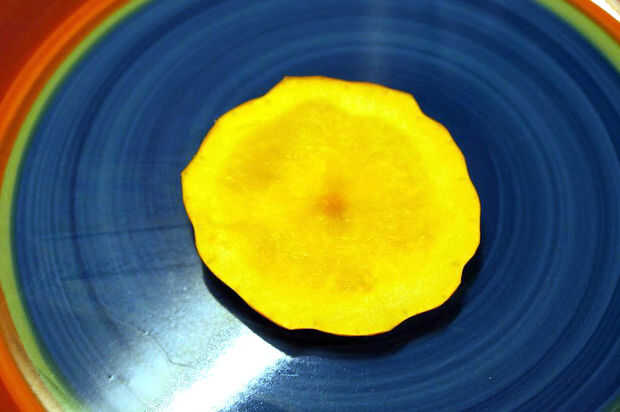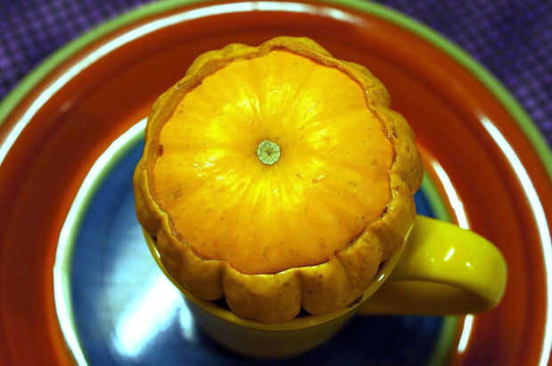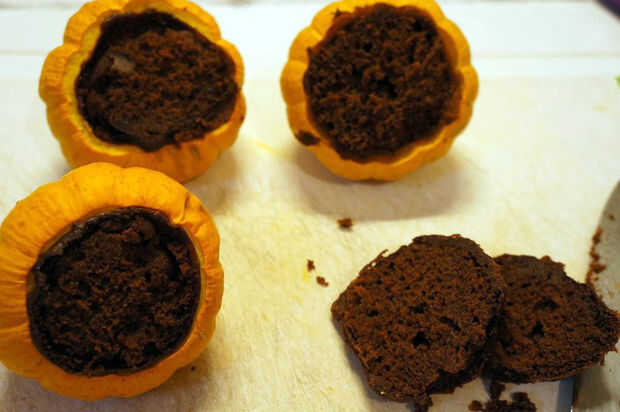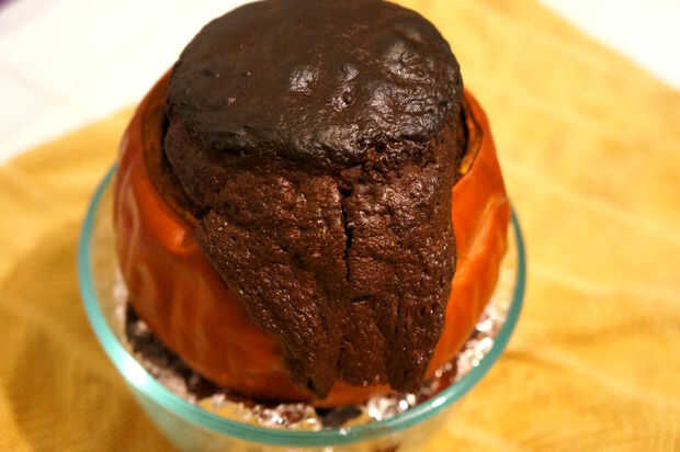 Usted puede decidir dejar la parte superior redondeada y basta con retirar la grasa de exceso torta si corte la parte superior de la calabaza.