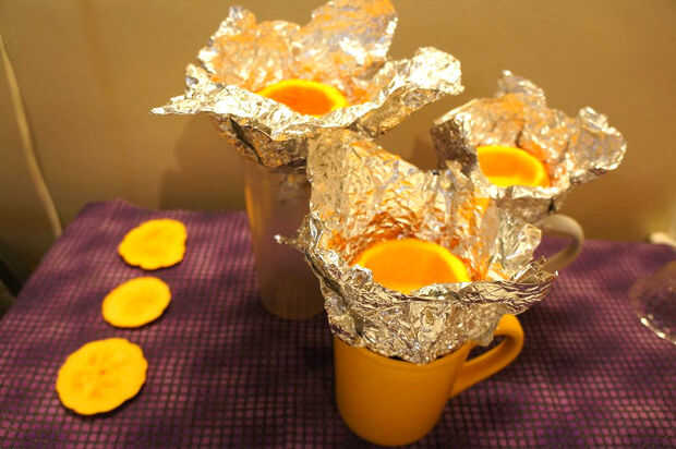 Usé papel de aluminio para estabilizar las calabazas en las copas.