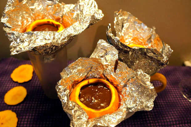 Con el mismo método, puede hornear natillas u otro pudding (en una calabaza).Paso 1: Hornear la calabaza 1 calabaza pequeña sobre 1 kg1/2 cucharadita de canela en polvo y una pizca o dosCortar la parte superior de la calabaza como se muestra y limpia