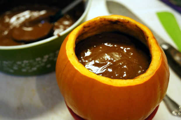 Hornear un pastel dentro de una calabaza y tallarlo (7 / 11 paso)