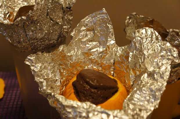 Sacar la calabaza del horno y deje que se enfríe totalmente, tirando el papel de aluminio de la cáscara.