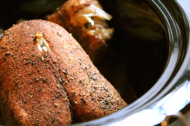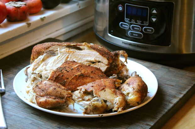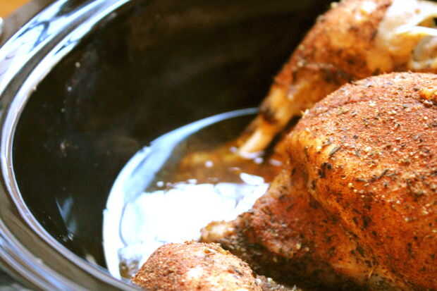 El pollo estaba muy húmeda y cayó aparte fácilmente, pero creo que la próxima vez te lo cocino durante menos tiempo. Esta vez hice el completas cuatro horas que podría haber sido un poco largas para el tamaño del Ave.
