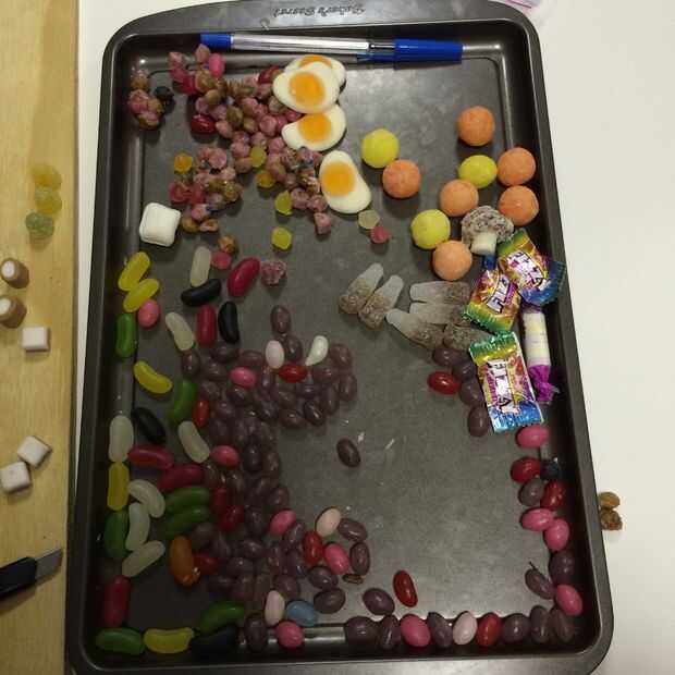 Una variedad de caramelo colorido es mejor cuando de decoración. Utiliza el hielo como pegamento y comenzaron las decoraciones pero dejó para otros en Fablab agregar a.