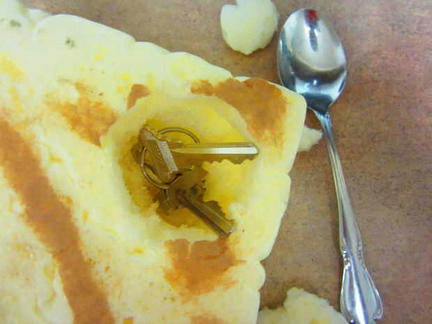 Ahora tenemos un bolsillo para ocultar tus llaves/tesoros. Usé una cuchara ordinaria para tallar hacia fuera un agujero lo suficientemente grande como para caber mis llaves de repuesto. Yo también tallado hacia fuera un agujero más pequeño en el lado opuesto para que se vea como la apertura del nido.