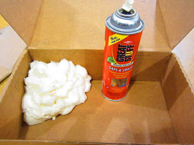 Acumulado un montón de espuma en una esquina de una caja de cartón. Esto le permite tomar la forma de la esquina que se ajusta perfectamente en cualquier rincón de casa. He intentado darle forma lo mejor que pude con capas.