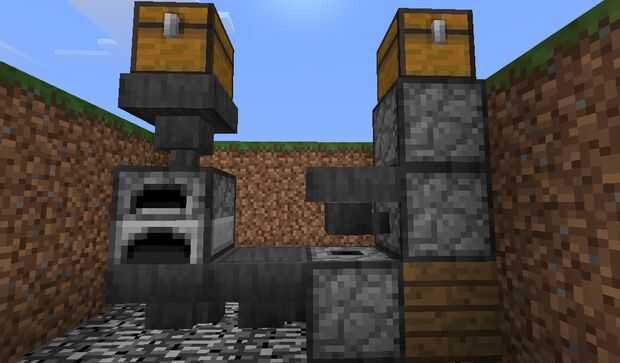 Añadir una tolva en la parte superior del horno (agachado) y luego colocar un cofre en la parte superior. En el lado derecho colocar un bloque de 2 tolvas uno encima del otro (hacia arriba y agacharse al hacerlo) y luego coloque, coloque un pecho y haya casi terminado!