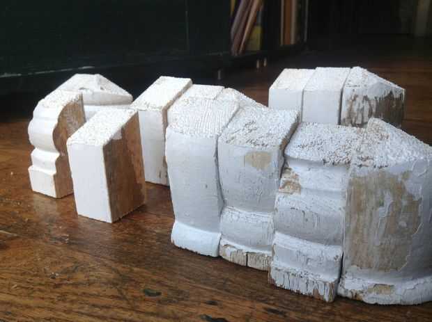Utilicé un post encontrado porche y picado y alineado los trozos alrededor de otro pedazo del post que era del mismo tamaño que la base de la estufa de cerámica.