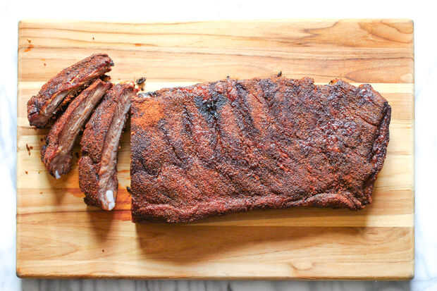 Vagamente algunas láminas de la tienda sobre las costillas y dejarlos reposar unos 15-20 minutos. Suele ser tiempo suficiente hacer una ensalada rápida, maíz o una ensalada verde, así que funciona bastante bien.