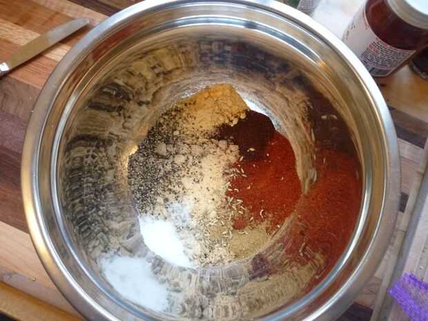 Ajustar las cantidades de estas especias a tu gusto y la cantidad de costillas. Cada vez conforman el problema, estoy seguro de que es un poco diferente entonces el último. Aquí es un buen lugar para empezar si vas a frotar hacia abajo uno o dos estantes llenos...