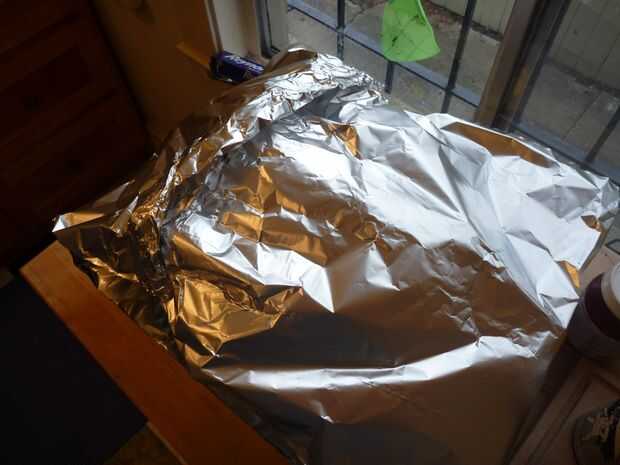 Fui alrededor de la parte inferior de la bandeja y lazo en la parte superior en unas direcciones sólo para estar seguro tenía un sello hermético. Ver la progresión de la foto a continuación.