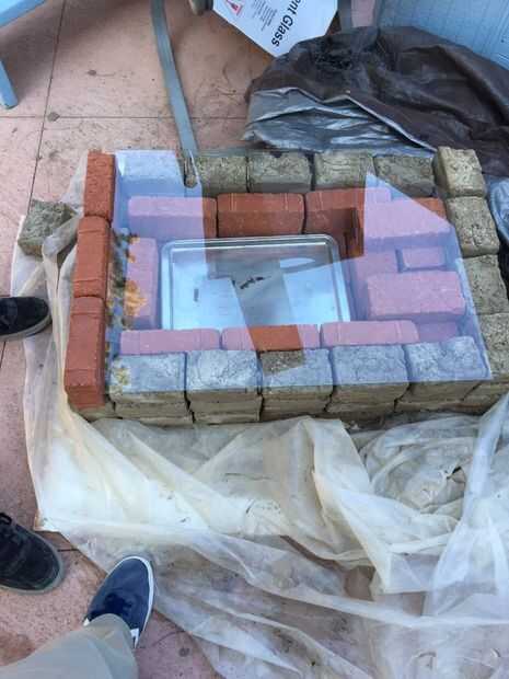 Asegúrese de comprar el vidrio que se adapta a su horno. Asegúrese de dejar espacio para colocar cosas adentro, y como tenemos ladrillos extraíbles para colocar material en el interior. Si usted puede comprar una bandeja de metal que se adapta exactamente (o lo suficientemente cerca) a la ranura abierta que se utiliza para obtener dentro del horno. Si los ladrillos son desiguales a los lados puede tratar de reorganizar a alturas similares. Se utilizaron tres ladrillos de almacén comprado para el extraíble lado porque nuestro reemplazo de adobe no endurece bien, o realmente va bien. Una vez que crees que se coloca bien ir adelante y vaya al paso siguiente.