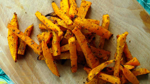 Y ¡ listo! La calabaza debe ser suave interior con una piel crujiente en el exterior. Estas son la perfecta baja en calorías, altamente nutritiva alternativa a las patatas fritas. Tienen un pequeño retroceso picante para mantener las cosas interesantes que ahora el tiempo ha pasado frío.