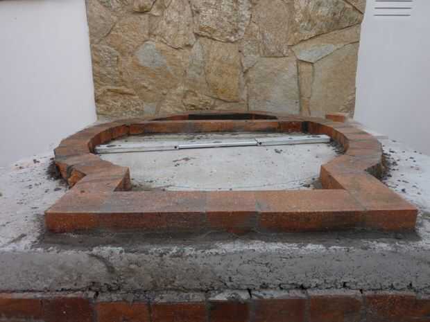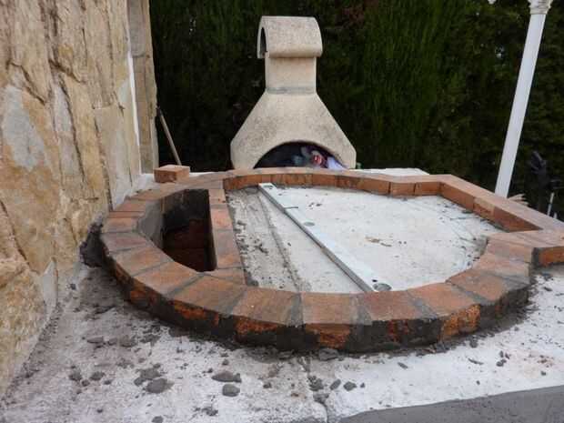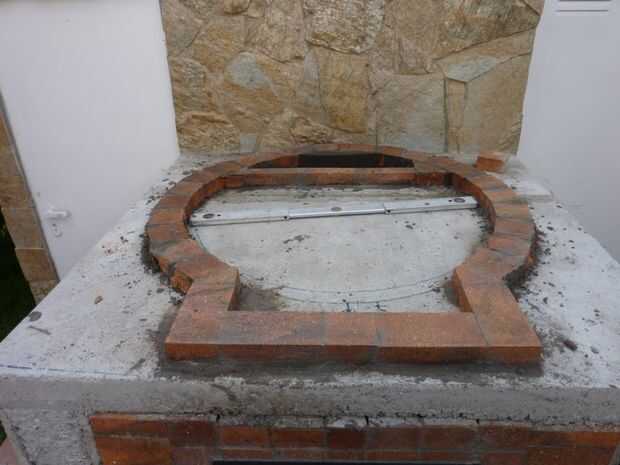En la base de hormigón, coloqué la bandeja del horno, me he centrado para adaptarse a