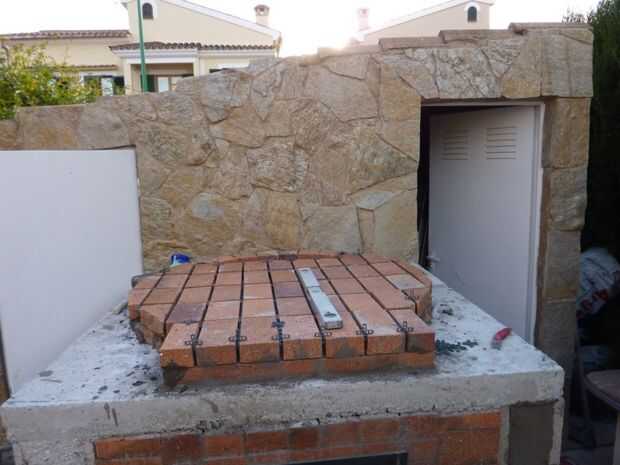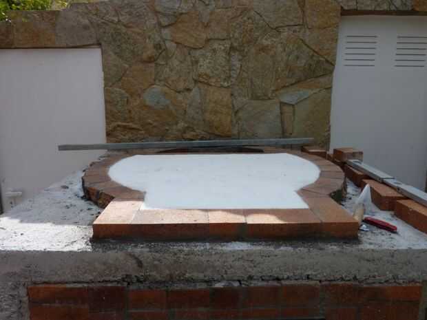 Coloqué ladrillos de sal, sólo tienes que ir sobre ella, sin cualquier cemento, pasando por el borde, colocado con cemento refractario. Dejar juntas entre los ladrillos, luego rellena con material refractario.