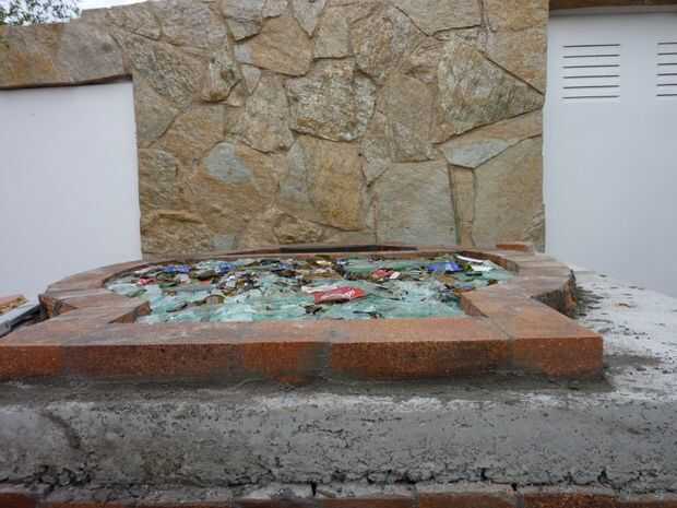 Luego llena el interior con sal en el vaso y luego poner los ladrillos en la base del horno, el