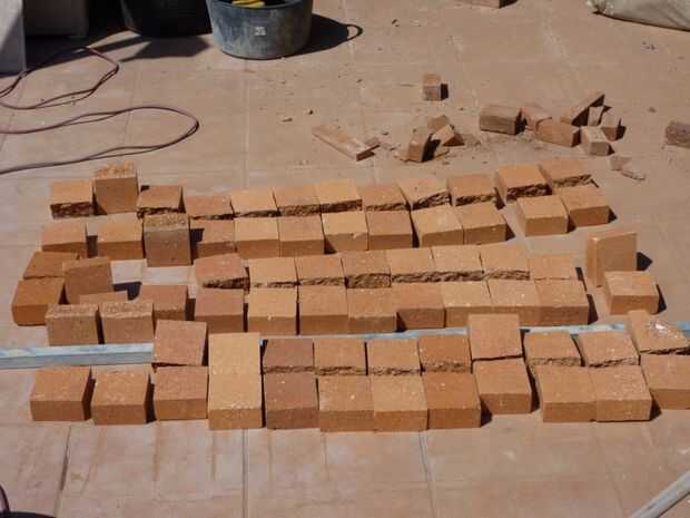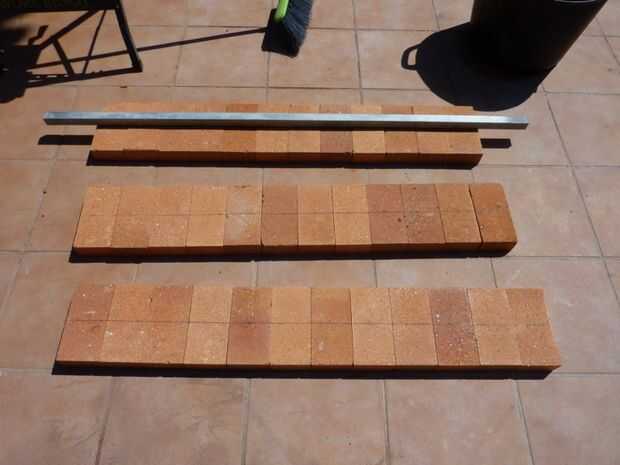 Comencé a poner los ladrillos alrededor, construcción de moldes, la colocación es más rápida y más fácil que si lo hacemos con una guía de cuerda con nudos.